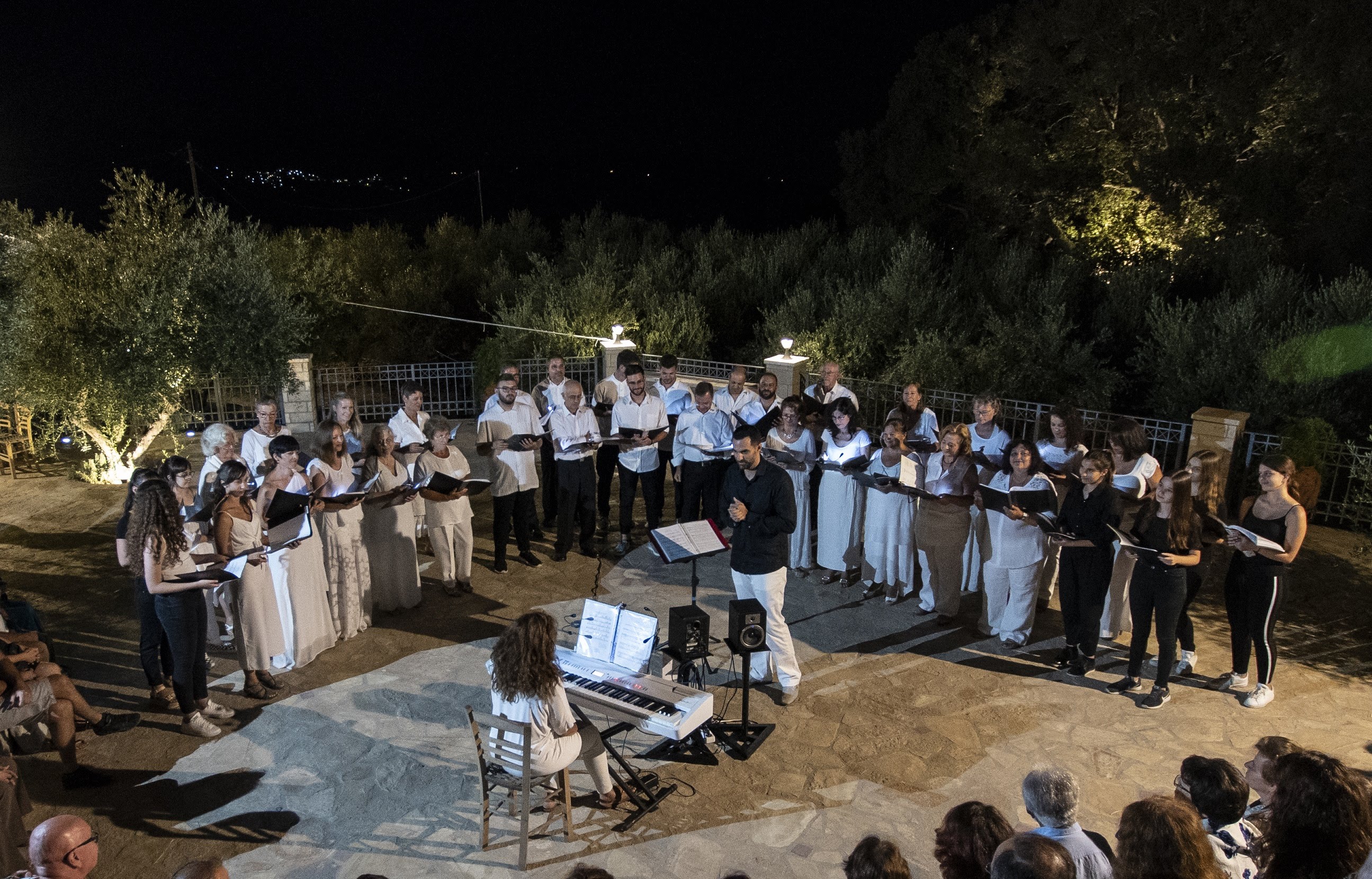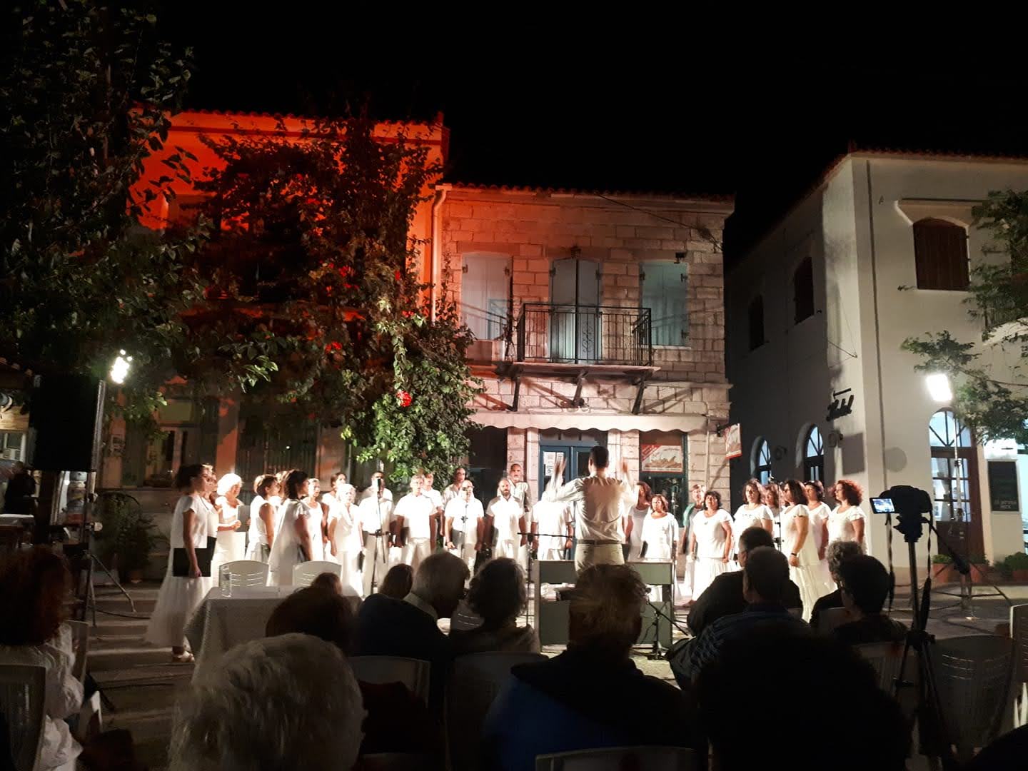 The choir appears in significant artistic events happening on the island and has performed in more than 100 concerts. “Idili” has also participated in several festivals in Athens, Thessaloniki, Volos, Ikaria and twice in the temple of Apollo at Didyma, Turkey. Important highlights in the history of the choir are: the participation in a concert dedicated to Yiannis Ritsos and directed by Christos Leontis and the cooperation with Greek National Opera artists, the Encardia musical ensemble, the male choir of the former Greek Commercial Bank and other local musical ensembles. Within this cultural association a literary workshop has emerged since 2020. Both acknowledged and new authors have contributed to the creation of the fore previously published books entitled: «Κάτω στο Γιαλό», «ΗΔΥΛΗακές ιστορίες και παραμύθια» ,«Μπρούνο», «Μέλι και κεντρί» .